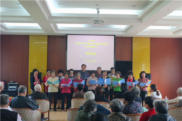 随后,学院歌咏小组献歌两首,退休教师夏宝娟演唱沪剧,将祝寿会气氛引向高潮。最后,祝寿会在欢声笑语中圆满落幕。