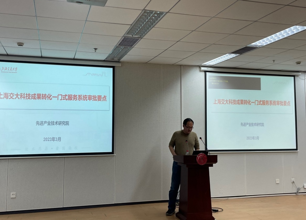 产研院知识产权运营服务中心副主任朱明轩系统地介绍了交大科技成果转化改革新政策,并介绍了成果转化“一门式”服务线上审批具体流程,以及不同类别成果转移转化途径。