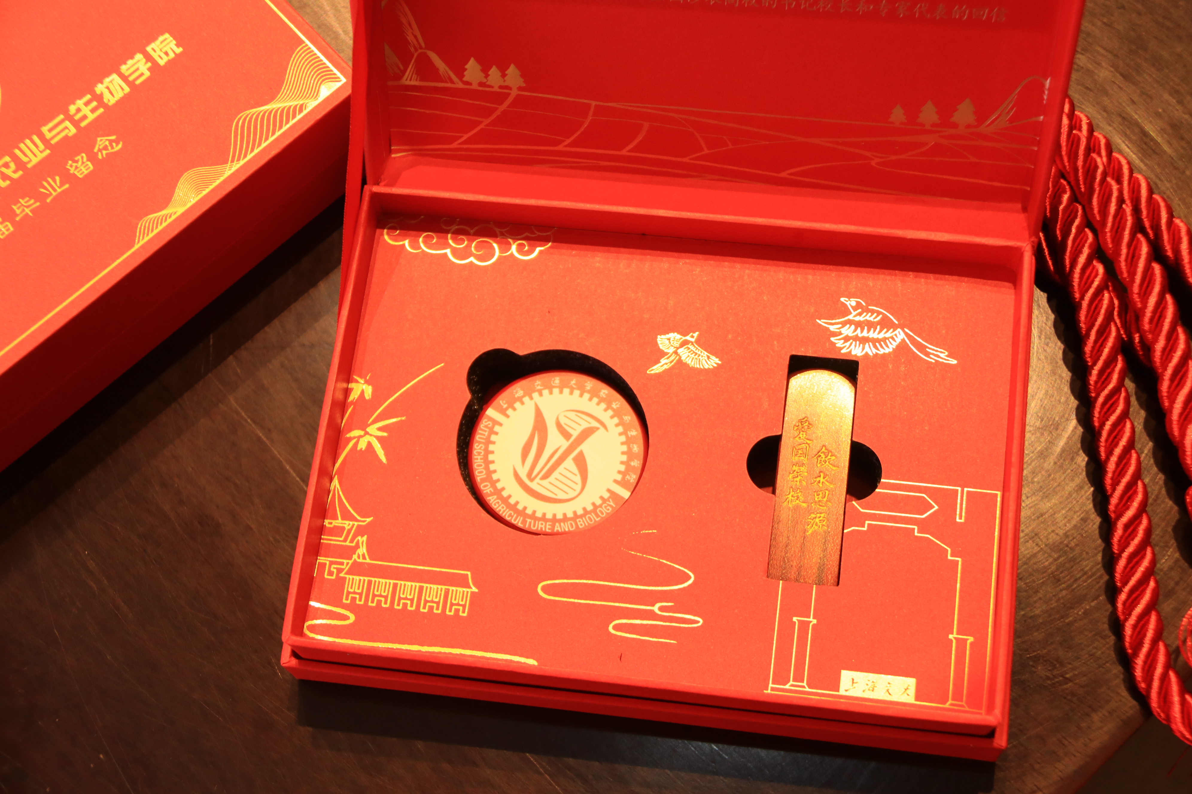 侯士兵和薛红卫代表学院接受赠礼,并将刻有姓名的印章作为毕业礼物赠予毕业生,希望能为大家烙下一份母校和母院的眷恋,也期待这份印记能陪伴并见证毕业生们今后的每一个重要时刻。