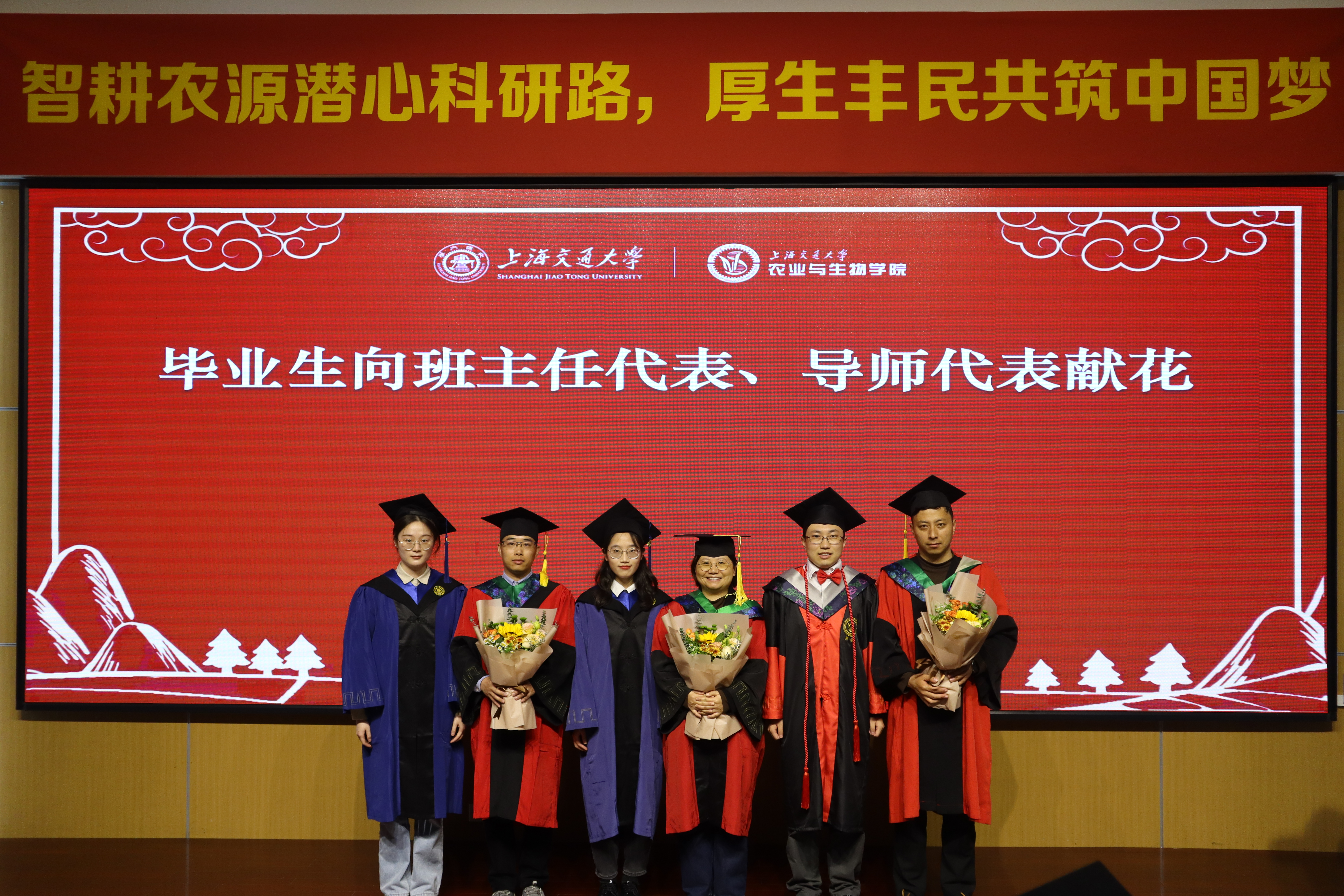 毕业生代表向班主任代表及导师代表献花,感恩老师们在科研和生活中的无私奉献与谆谆教诲。